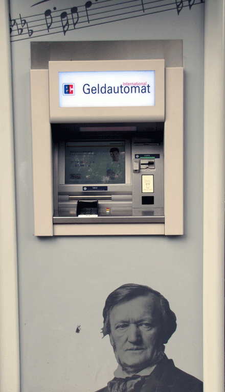 Da ist es kein Wunder, dass nah am Bayreuther Festspielhaus selbst ein Geldautomat mit seinem Konterfei geschmückt ist – nützlich obendrein, denn das Vergnügen, sich edel gewandet und bevorzugt paarweise auf dem Bayreuther Hügel fotografieren zu lassen, ist anerkannt teuer und auch bei bester Kassenlage nicht für alle zu haben, denn einiges bleibt wie es immer war: Die Karten sind rar, die Luft im Saal ist stickig und die Vorführung lang.