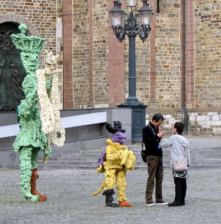 Fotografiert werden ist für mich so lästig wie Straße kehren. Ich hasse dieses Grinsen in fremde Objektive und habe Fluchtgedanken, wenn mir jemand „Cheese“ zulächelt oder gar fordert, ich solle doch jetzt mal ganz natürlich gucken. Was ist natürlich? Genau. Ich weiß es nicht. Nur in unbeobachteten Momenten entspannt sich der Geist. Und dann spielt auch der Körper mit. So geht fotografieren. Auf der Straße sowieso. Da ist jeder Platz eine Bühne. Aber das wissen nur die Puppen.