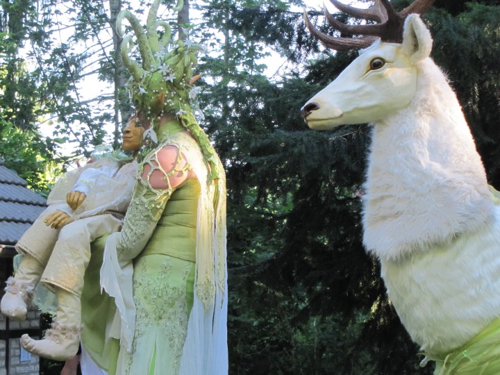 Märchenwesen im Park von Burg Gladbach: Gruppe „Pantao“.(Das oben abgebildete Gemälde im Park hat Markus Bollen erschaffen.)