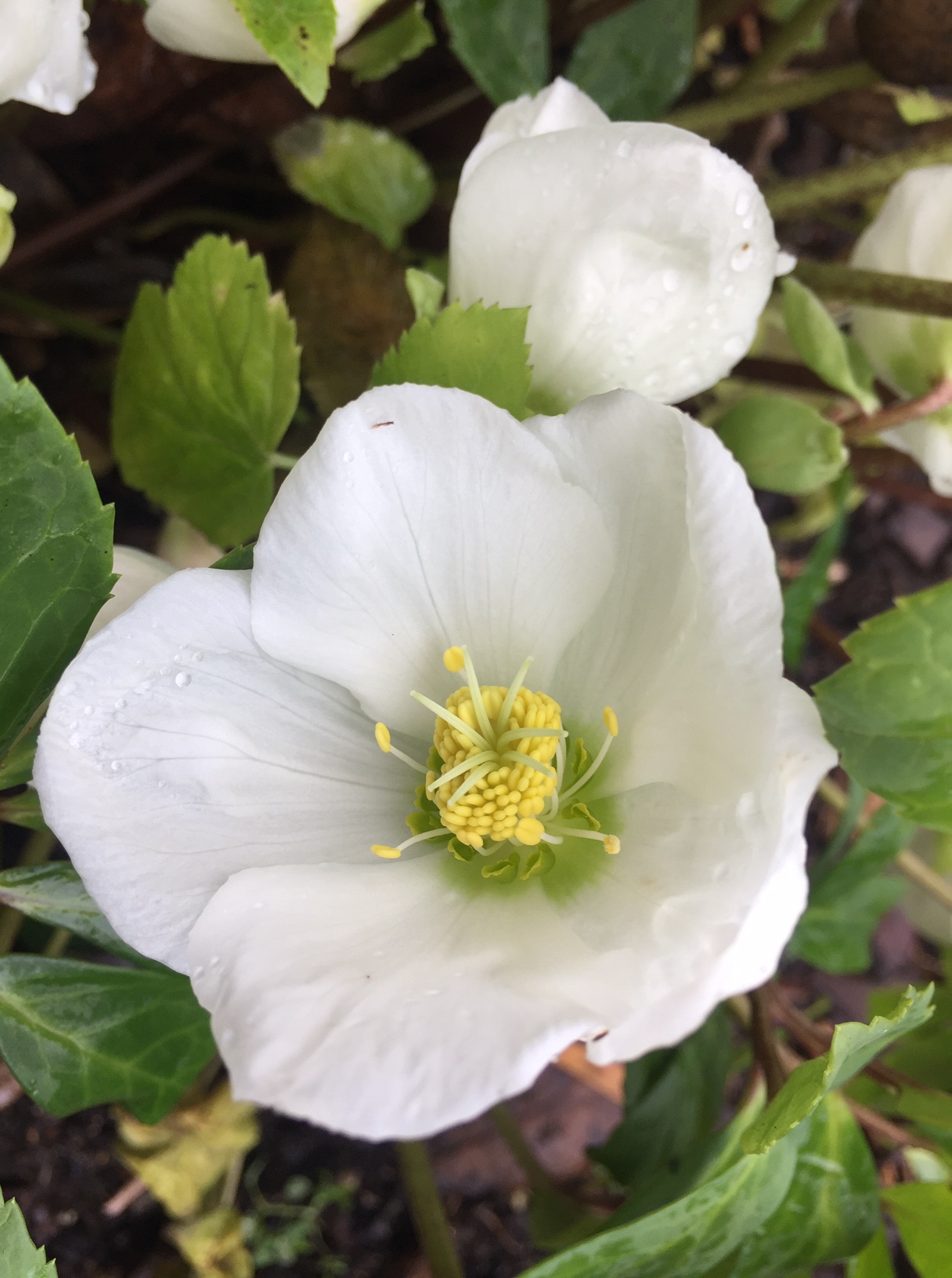 Kaum hatte ich das Foto gemacht, meldete sich hinter mir die Christrose, und das war kein Wunder: Schließlich ist sie nicht nur die Schönste im ganzen Beet, sondern sie erinnert auch daran, dass ein Hirtenjunge dem Christkind eine ihrer Blüten geschenkt hat .